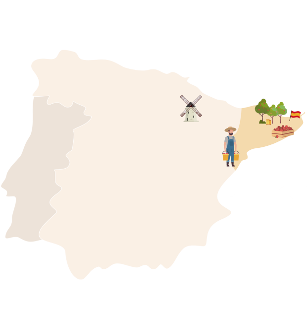 Haz clic en los corazones para saber más sobre cada productor y su campo de manzanos.