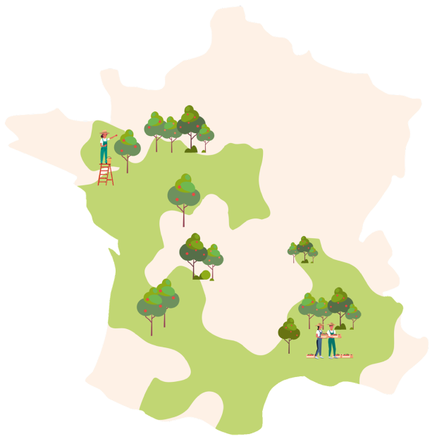 Cliquez sur les cœurs pour en savoir plus sur nos producteurs et leurs vergers.