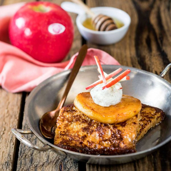 French-toast style ginger bread with caramelised Pink Lady® and vanilla mascarpone cream.