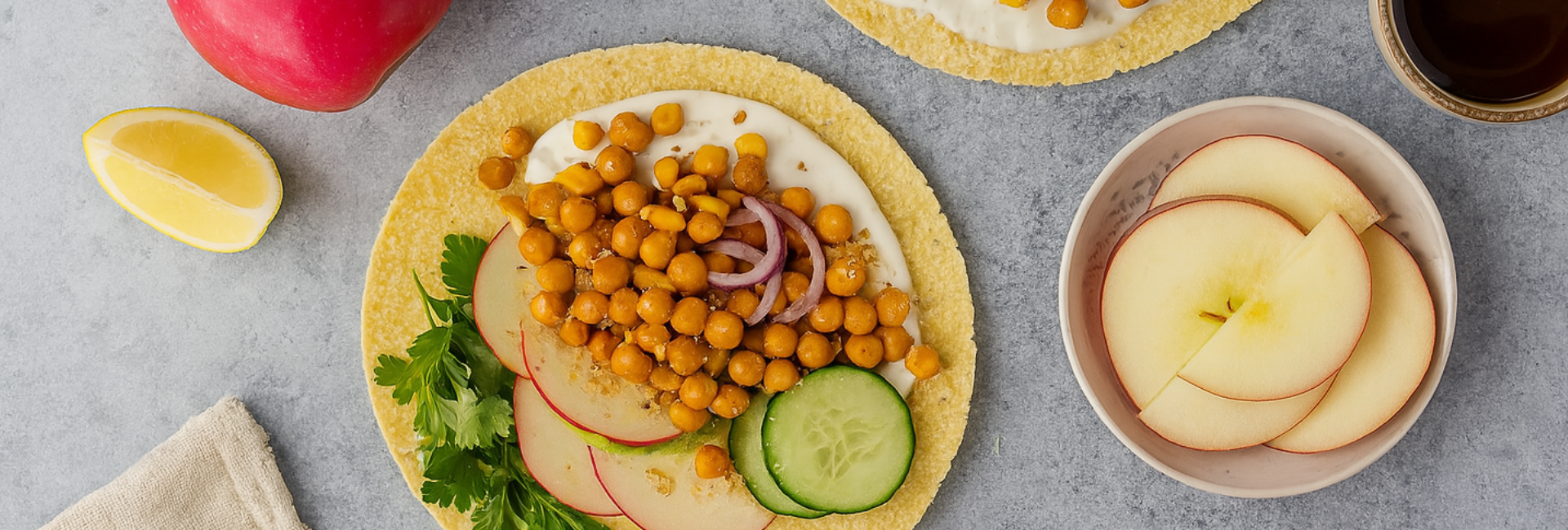 With crunchy Pink Lady® apples, corn, spices, lime and soft tortillas, all the ingredients come together for an explosion of flavours and an invitation to travel. Enjoy these treats on their own, for a light lunch or a festive vegetarian dinner.