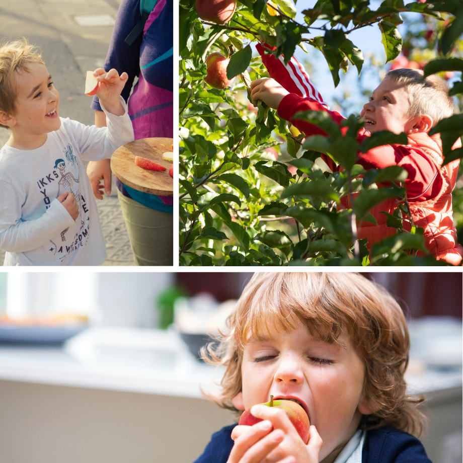 Crunchy, with a unique colour and the perfect balance between sweet and tart, with subtle aromas of wild strawberry, vanilla, lychee and rose: PinKids® apples offer the same sensory qualities as their big sisters, Pink Lady® apples.