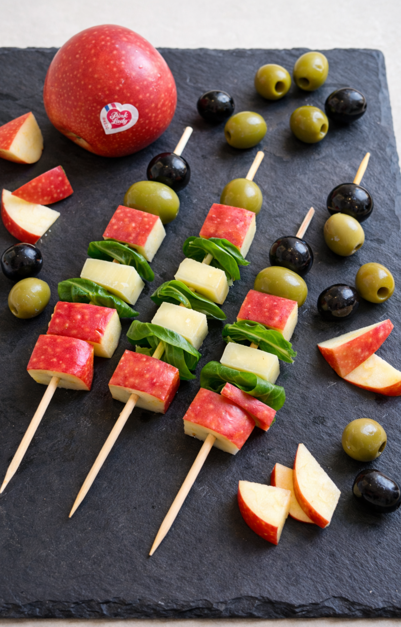 - For a healthy appetiser, serve your Pink Lady® apple skewers with pieces of toast and tapenade!