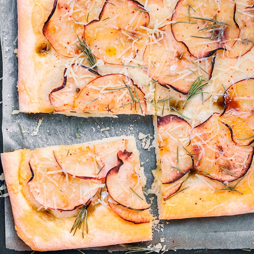 - Pour the remaining tablespoon of olive oil onto the apples and sprinkle with the rest of the rosemary.
